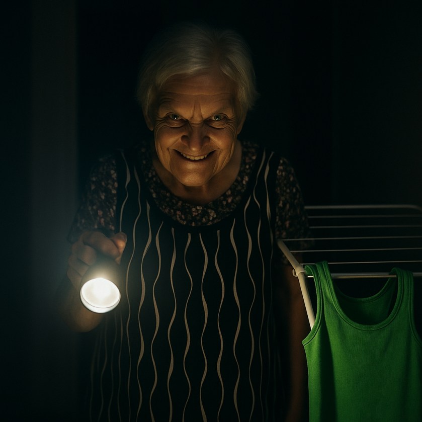 Evidentemente, ciò che avevo “ipotizzato” è giunto all’orecchio di mia madre che si deve essere alterata, forse perché era corrispondente alla realtà?!? L’ho vista abbassare la serranda, guardare arrabbiata verso la telecamera per poi fare l’inequivocabile gesto “mavaffan…”! Poco dopo essere uscita dalla stanza e spento la luce, è comparsa una piccola lucina, che sembrava proprio quella di una torcia! Poco più tardi è entrata, al buio, per stendere (ovviamente male, causa cecità indotta) un paio di panni.